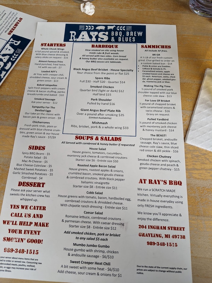 Welcome to Ray's - BBQ, Brews & Blues, a vibrant culinary destination nestled in Grayling, MI, where flavor and music unite. Walk through the doors and you're greeted by the tantalizing aroma of smoked meats, setting the stage for an unforgettable dining experience.